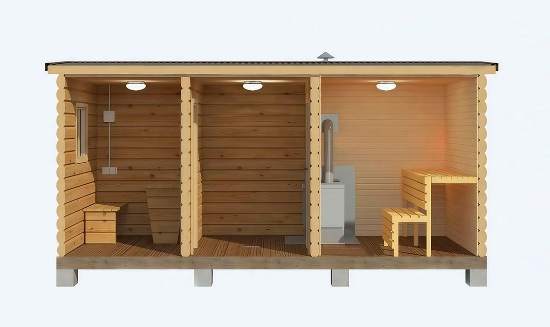 Не нужно заливать бетон! Мы устанавливаем баню на блоки или винтовые сваи — подбираем сами в зависимости от участка.